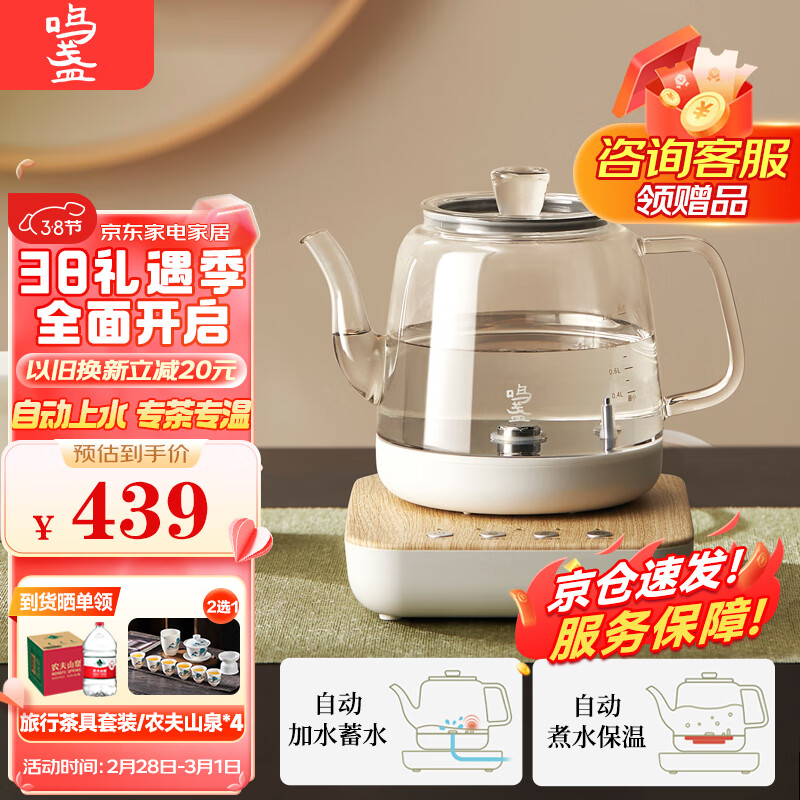 鸣盏烧水壶 智能自动上水电热茶艺壶 台式功夫煮茶泡茶壶一体机 专茶专温 送长辈礼赠礼物 MZ170A 1L价格:469.00元!