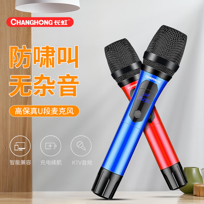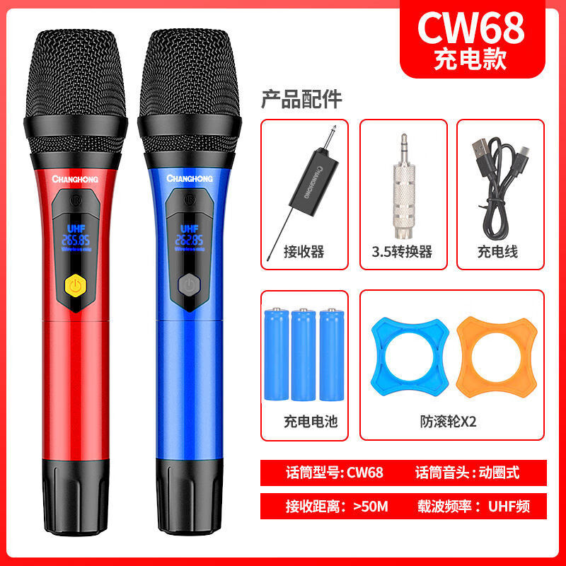 长虹CW68 可充电锂电池无线麦克风一拖二调频U段家庭KTV唱歌演讲舞台会议音箱音响卡拉ok练歌神器价格:258.00元!