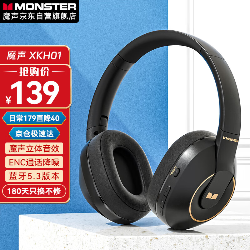 魔声(Monster)XKH01蓝牙耳机电脑耳机头戴式电竞游戏专用无线耳麦带麦台式笔记本吃鸡听声辩位 黑色价格:179.00元!