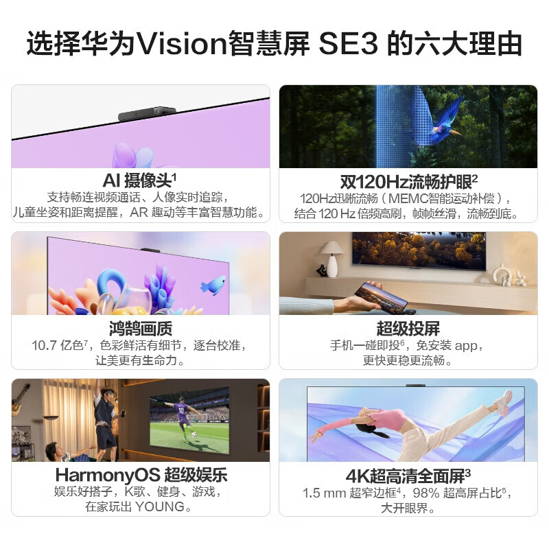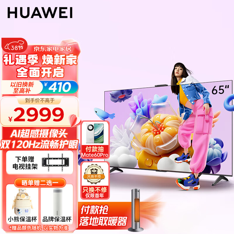华为电视Vision智慧屏SE3 65英寸4K超高清屏120Hz流畅护眼AI摄像头mate60超级投屏HD65KUNA价格:2999.00元!