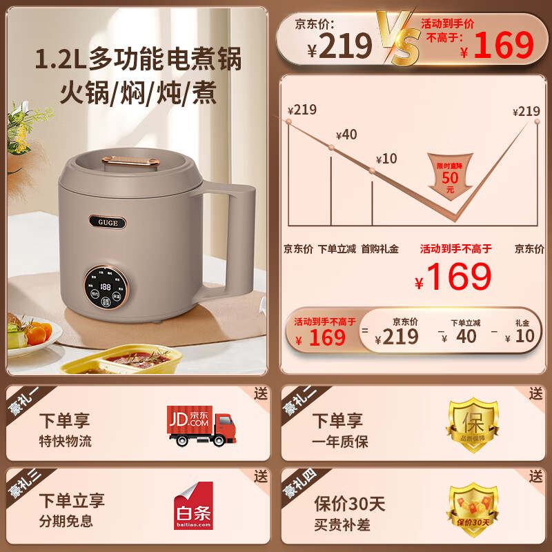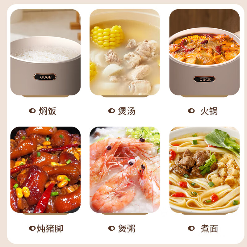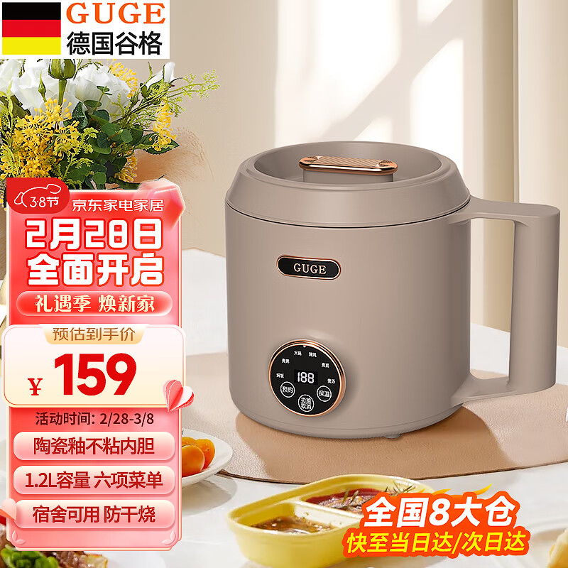 谷格(GUGE)德国电煮锅宿舍泡面锅多功能焖炖煮一体 小型迷你1-2人 插电速食电热锅便携式单人小电锅1.2LGG599 单人小电锅|宿舍煮面锅|GG599| 1.2L价格:219.00元!