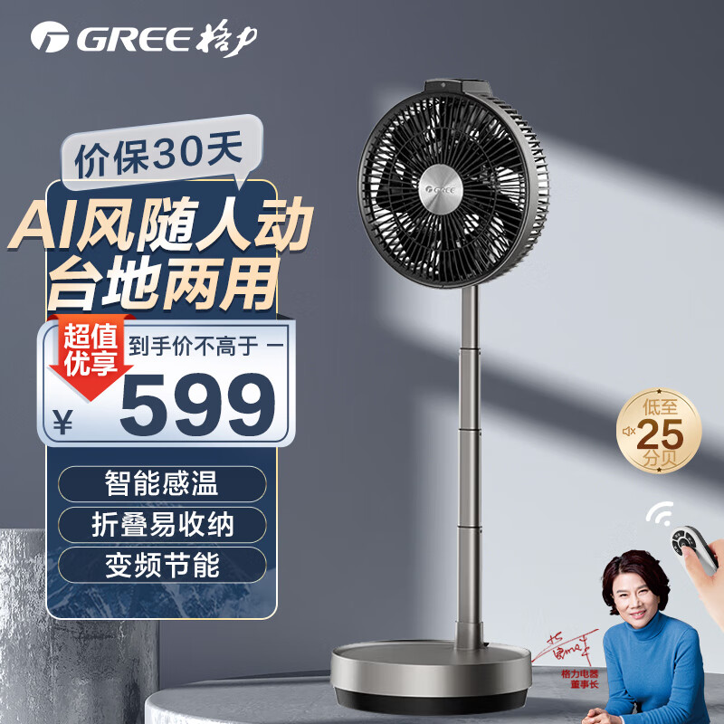 格力(GREE)【露营风扇】轻音USB风扇充电风扇学生宿舍办公迷你小巧台扇折叠落地扇台式桌面风扇 FSZ-23X63Bg7价格:549.00元!
