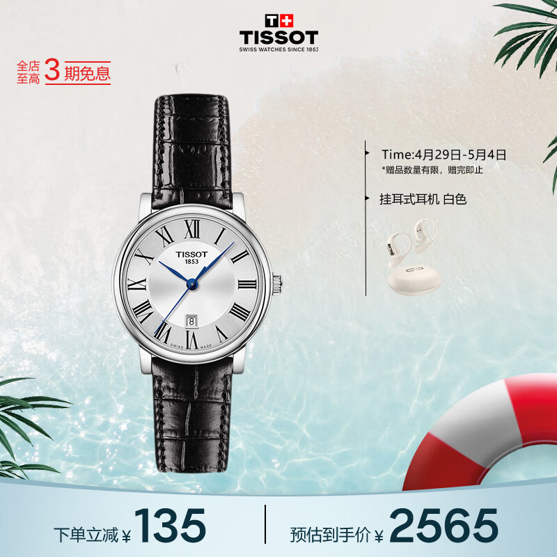 天梭(TISSOT)瑞士手表 卡森臻我系列腕表 皮带石英女表 T122.210.16.033.00价格:2700.00元!