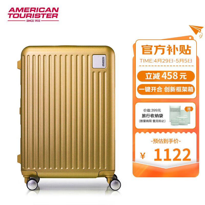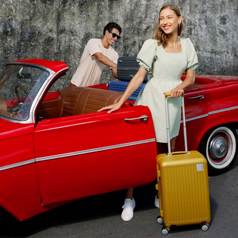 美旅箱包时尚休闲行李箱竖条纹大容量拉杆箱旅行箱QI9芥末黄24英寸价格:1122.00元!