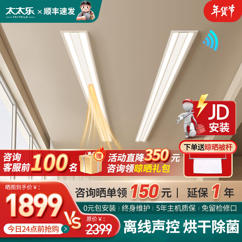 太太乐(TAITAILE)智能晾衣架隐形嵌入式晾衣杆电动晾衣机照明烘干杀菌全自动晾衣杆价格:2399.00元!