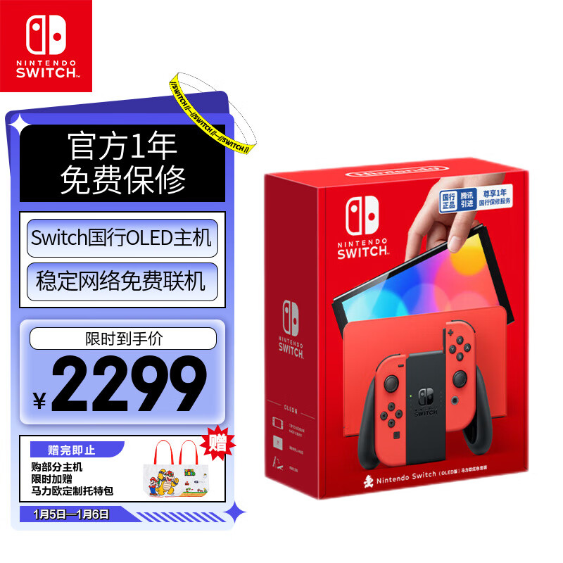 任天堂 Nintendo Switch 国行游戏机(OLED版)马力欧红色主机[特别设计款式] NS家用体感便携游戏掌上机价格:2299.00元!