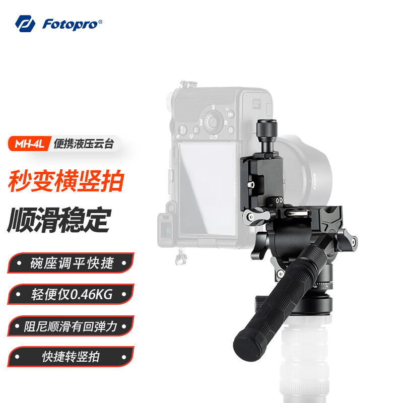 富图宝(Fotopro)MH-4L 水平碗座 液压回弹 通用1/4接口 相机微单横竖视频拍摄摄像云台价格:469.00元!