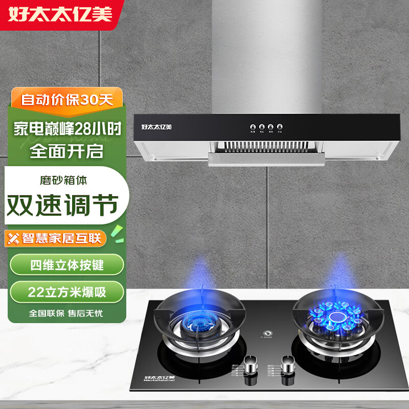 好太太亿美油烟机燃气灶套装22立方大吸力欧式顶吸式家用厨房5.2KW天然气烟灶两件套CXW-238-809DT1+JZT-B5T价格:699.00元!