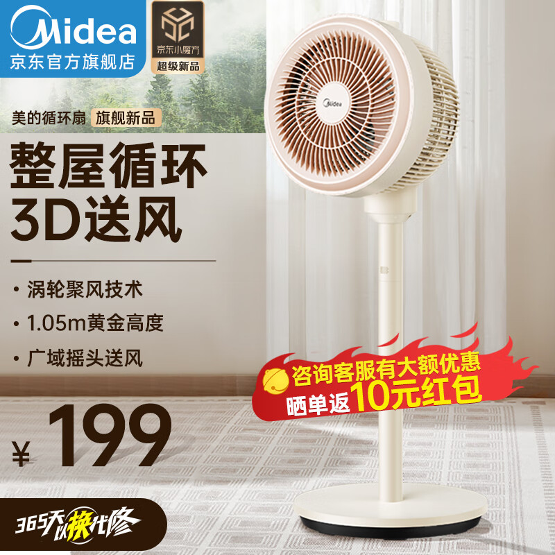 美的(Midea)电风扇空气循环扇落地扇涡轮换气扇家用摇头台式桌面两用小电扇宿舍低噪循环对流风扇台扇黄金身高 【台地两用 循环送风】(GAH24QC)价格:299.00元!