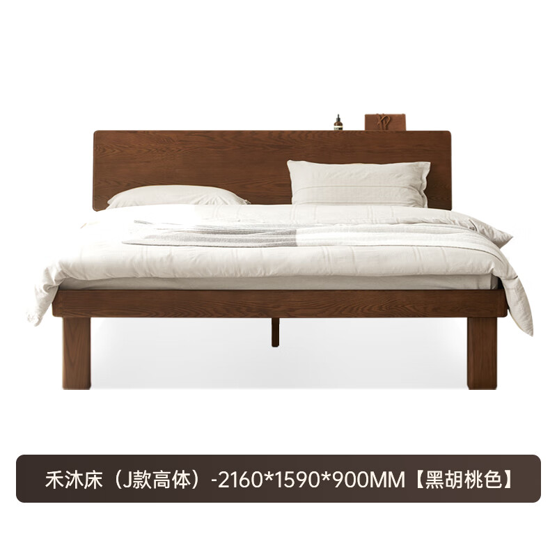 原始原素实木床现代简约1.5米橡木大床北欧夜灯双人床黑胡桃色-高体价格:2666.00元!