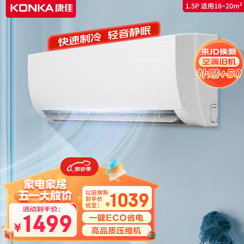 康佳(KONKA) 1.5匹 新能效 快速冷暖 一键节能 壁挂式卧室 以旧换新 空调挂机 KFR-35GW/9M5价格:1498.00元!