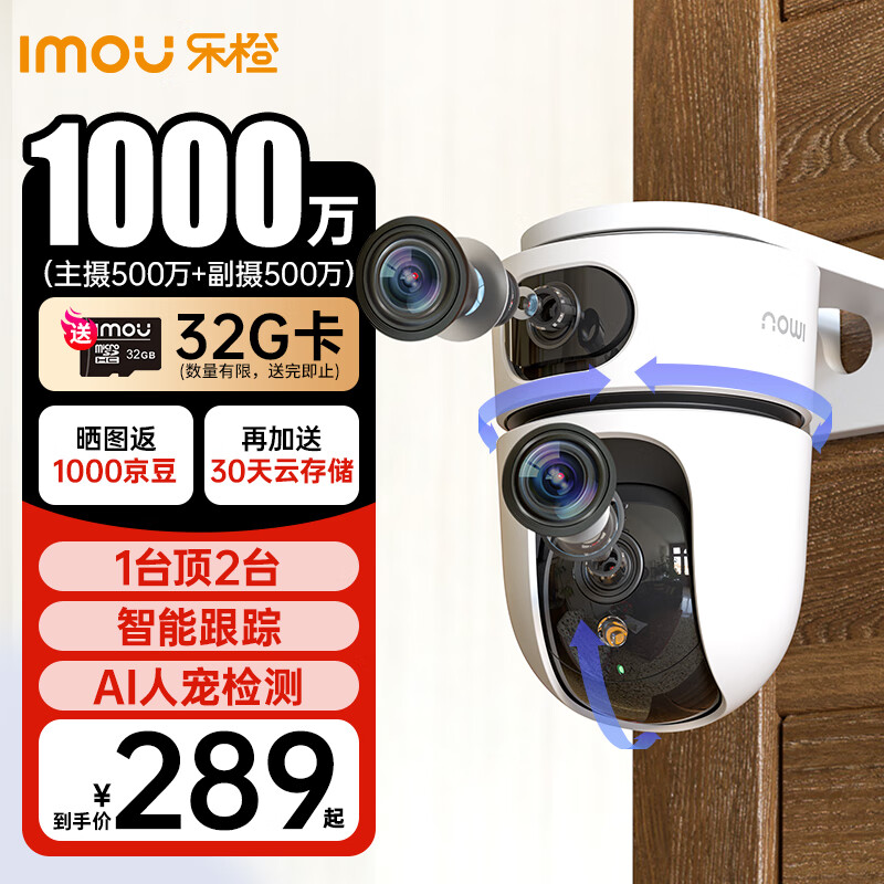 乐橙 监控摄像头家用无线 TA4D双摄1000万高清 手机远程监控360无死角带夜视全彩 宠物家庭宝宝看护器价格:288.00元!