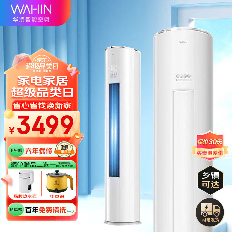 华凌空调新能效2匹客厅家用空调立式柜机变频急速冷暖手机智能遥控自清洁HF3/HA3轻奢价格:3499.00元!