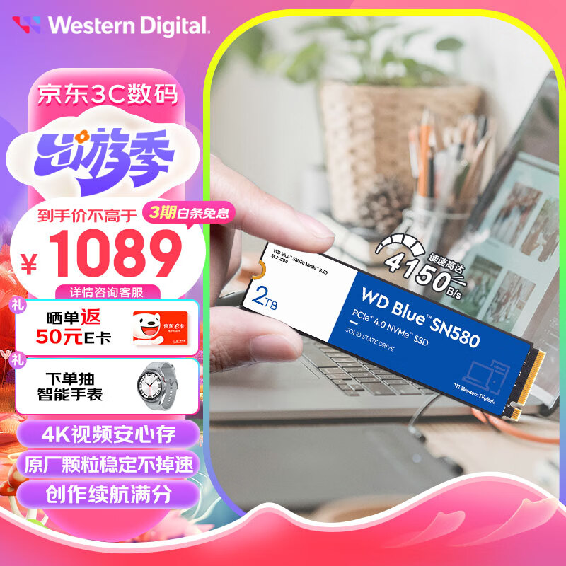 西部数据(WD)2TB SSD固态硬盘 M.2(NVMe协议)SN580 PCIe4.0 AI电脑配件 笔记本电脑台式机SN570升级储存硬盘价格:1089.00元!