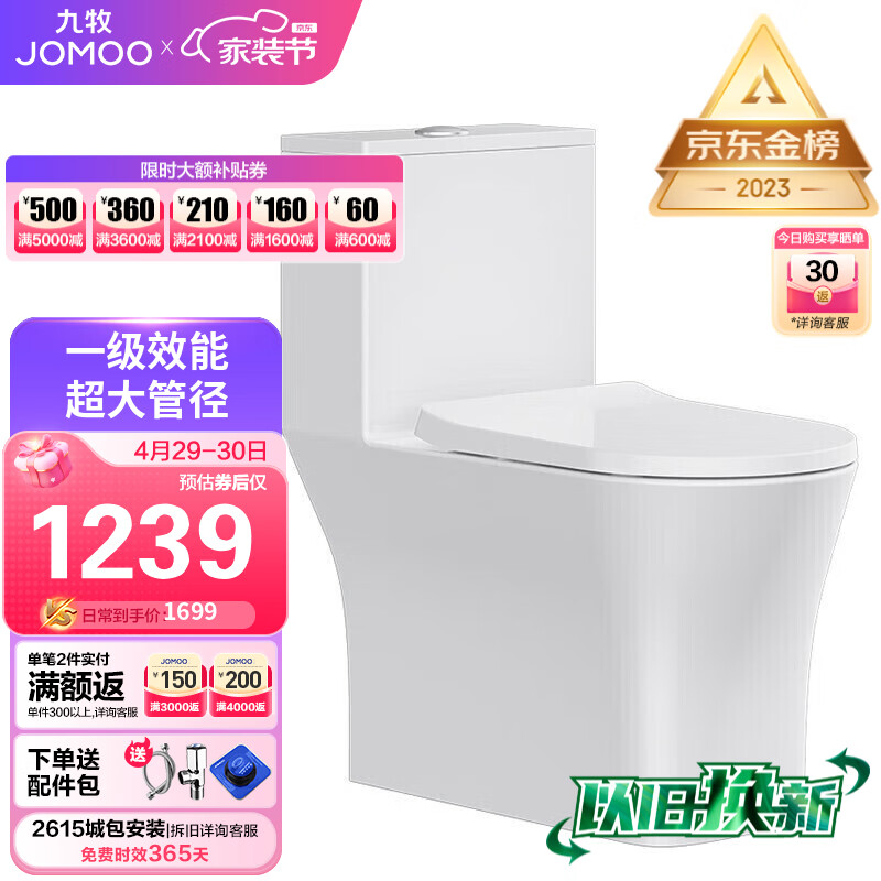 九牧(JOMOO)11322-2-2/41K-1 抗菌一级水效大冲力浴室马桶虹吸坐便器400坑距价格:1649.00元!