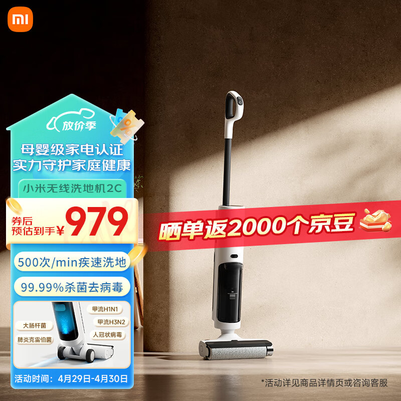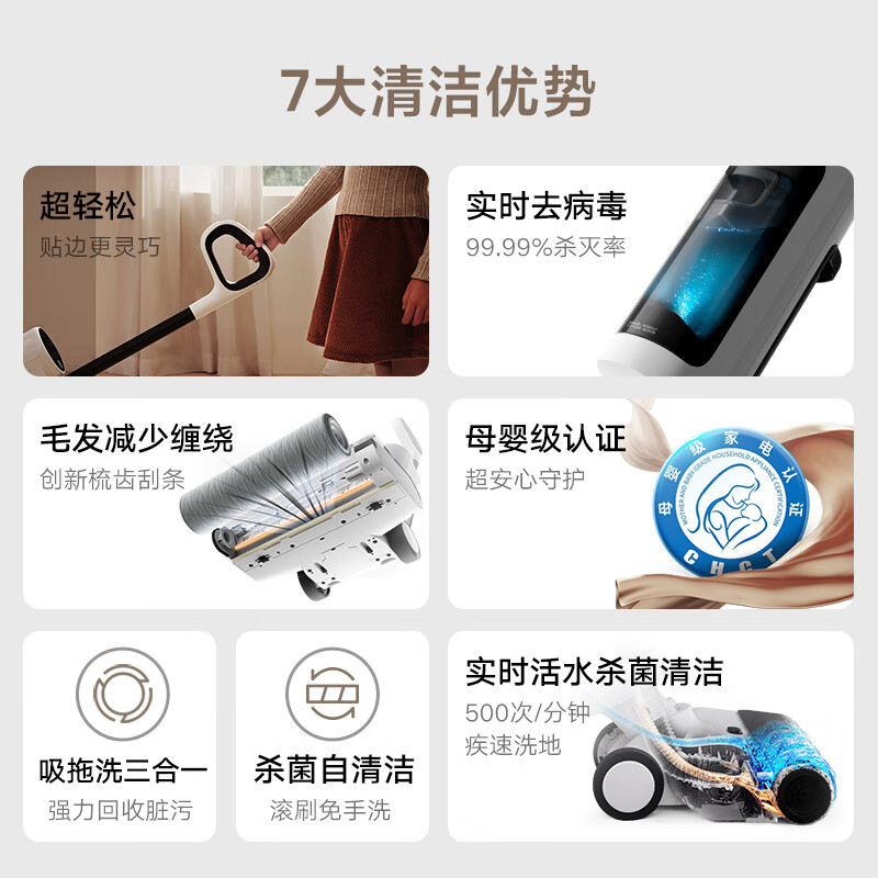 米家小米无线洗地机2C 家用吸拖洗一体 实时电解水杀菌 沿边扫拖自清洁 手持吸尘拖地 滚刷防缠绕价格:1079.00元!