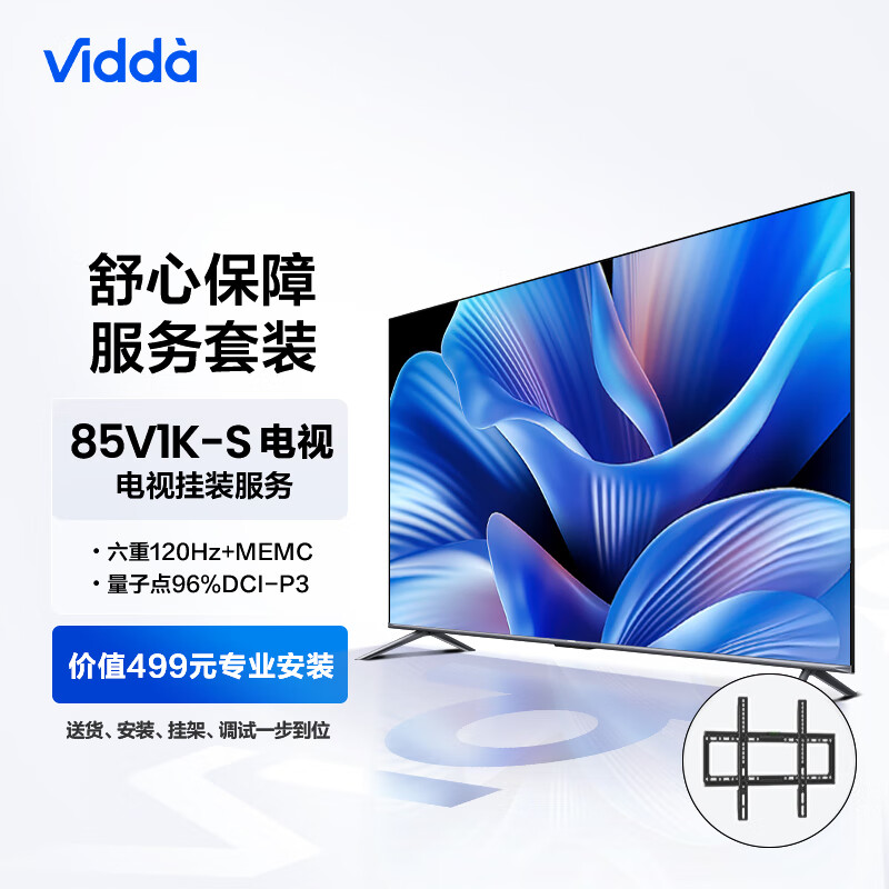 Vidda 85V1K-S 海信 85英寸 120Hz高刷 游戏电视+送装一体服务套装 送货 安装 挂架 调试一步到位价格:4799.00元!
