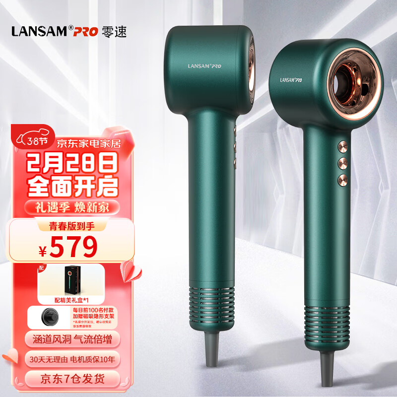 LANSAM零速吹风机家用风筒负离子护发高速大功率大风力速干不伤发理发店发廊用电吹风 青春版-典雅绿价格:999.00元!