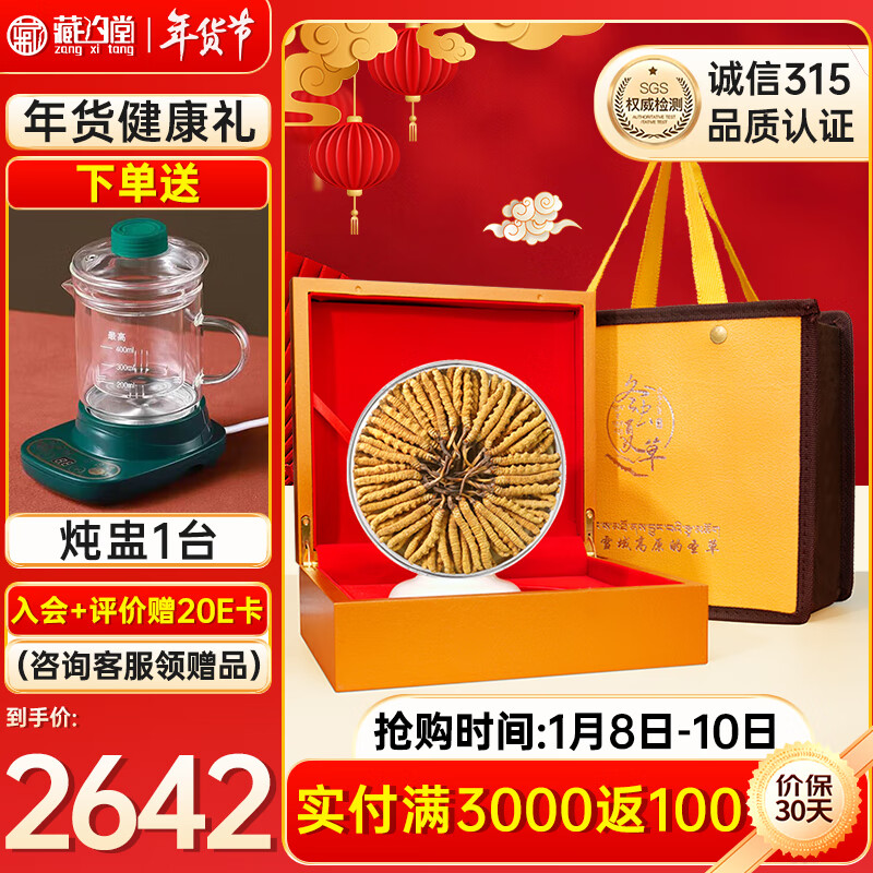 藏汐堂 冬虫夏草西藏那曲新干虫草礼盒装干货冬虫草 3根/克 20克装价格:3092.00元!
