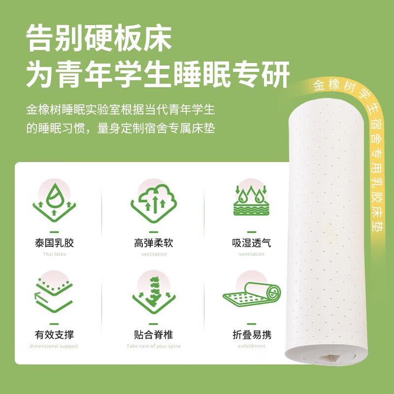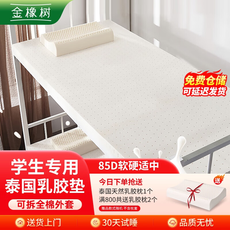 金橡树泰国进口天然乳胶床垫子宿舍学生单人床垫 90*190*5cm 云梦85D价格:545.00元!