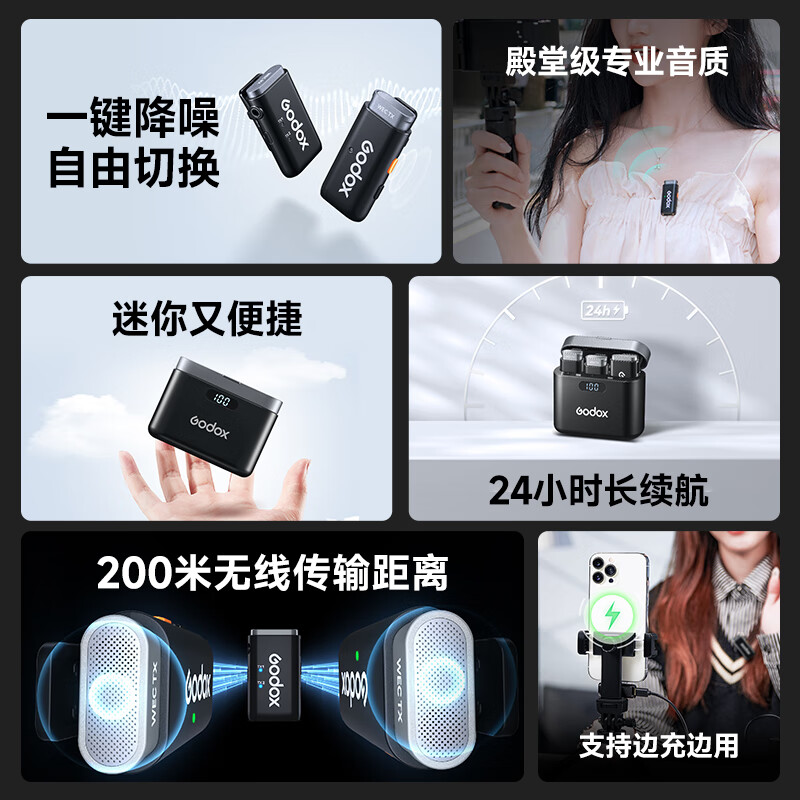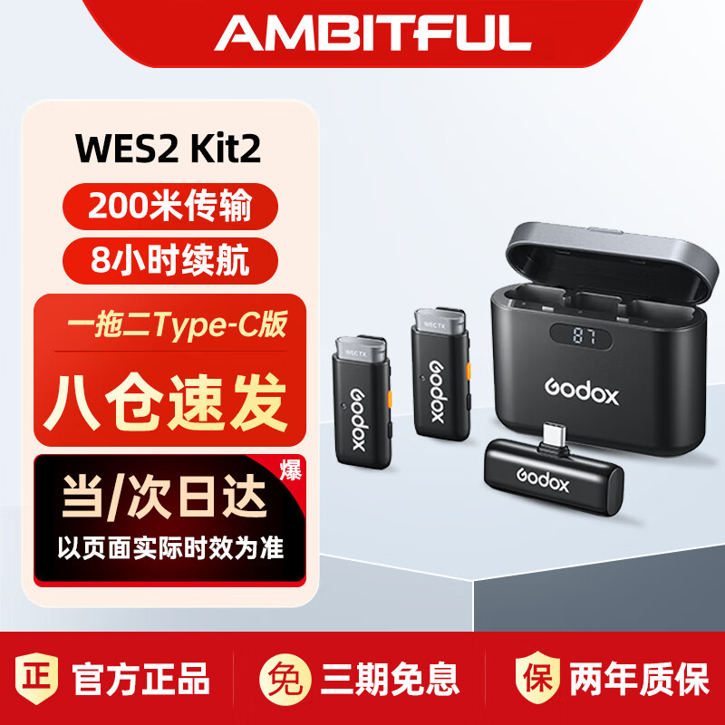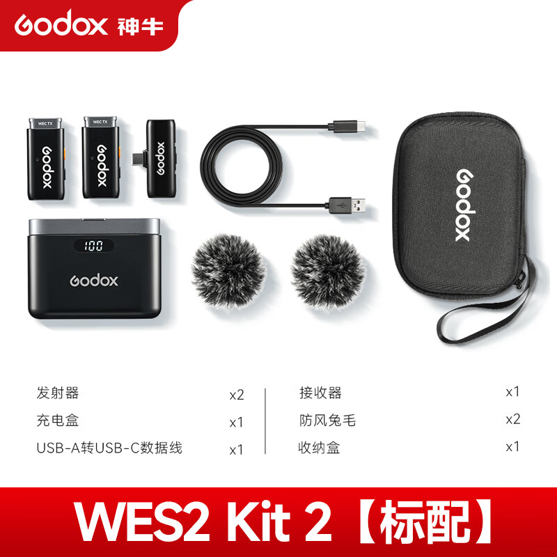 神牛(Godox)WES2一拖二无线领夹式麦克风安卓TYPE-C口小蜜蜂收音器户外降噪采访录音抖音主播直播设备话筒价格:599.00元!