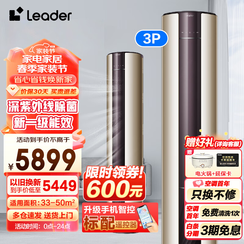 Leader海尔空调智家出品大3匹立式空调家用 新一级能效变频冷暖客厅深紫外除菌自清洁柜机WDA81TU1[家电]价格:6499.00元!