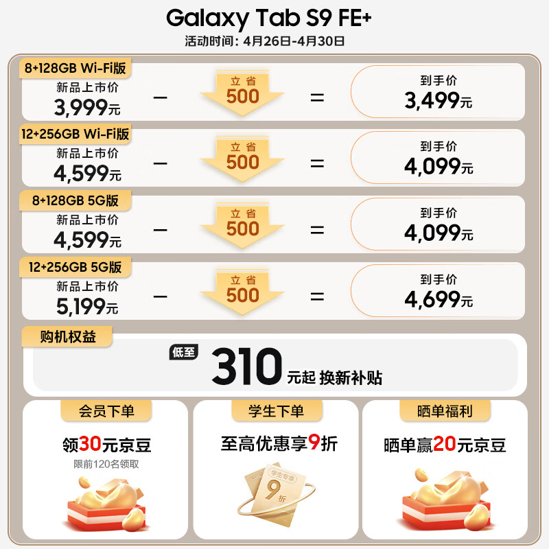 三星Tab S9 FE+价格参考: