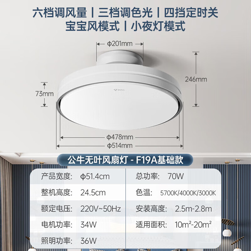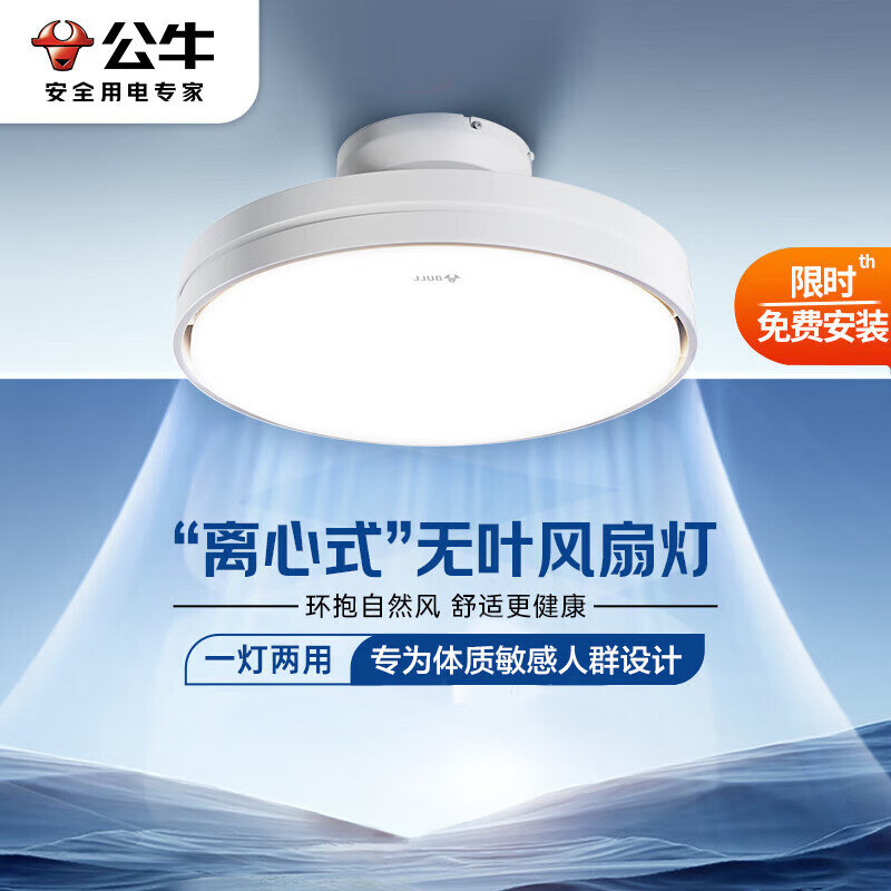 公牛(BULL)无叶风扇灯GF19ATled隐形吊扇灯客厅卧室餐厅儿童房宝宝风带遥控价格:624.70元!