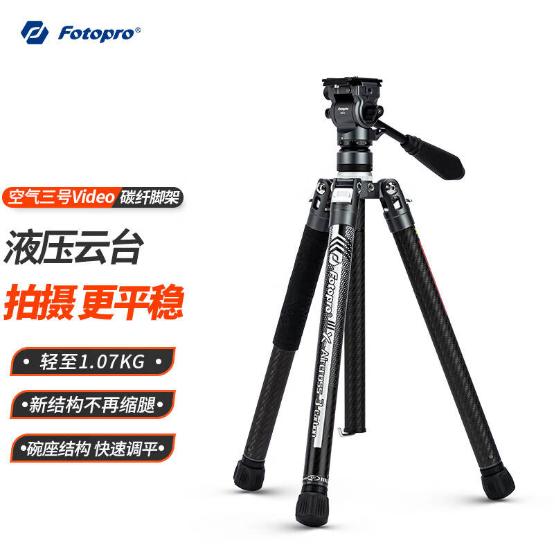 富图宝 Fotopro 空气三号 Video液压小云台便携反折碳纤维相机微单摄影摄像三脚架 原碳灰 含手机夹价格:999.00元!