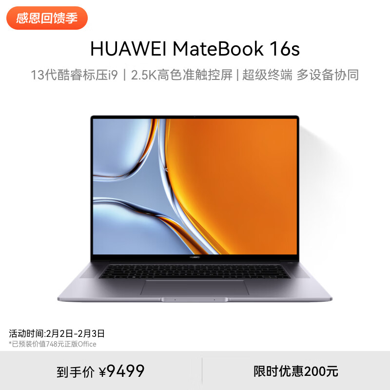 华为MateBook 16s 笔记本电脑 13代酷睿标压处理器/2.5K高色准触控屏/轻薄办公本 i9 32G 1T 深空灰价格:9499.00元!