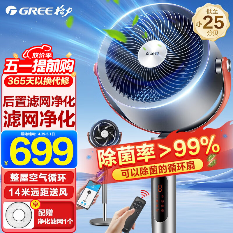 格力(GREE) 空气循环扇家用直流变频电风扇落地扇等离子除菌电扇WIFI智控预约涡轮换气扇 等离子除菌喷涂款FXDZ-2305Bag5价格:699.00元!