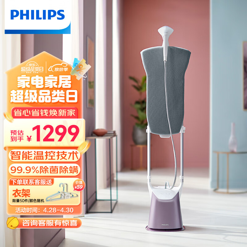 飞利浦(PHILIPS)立式增压熨烫机蒸汽挂烫机家用除菌除螨双杆带烫衣板GC626/38价格:1443.00元!