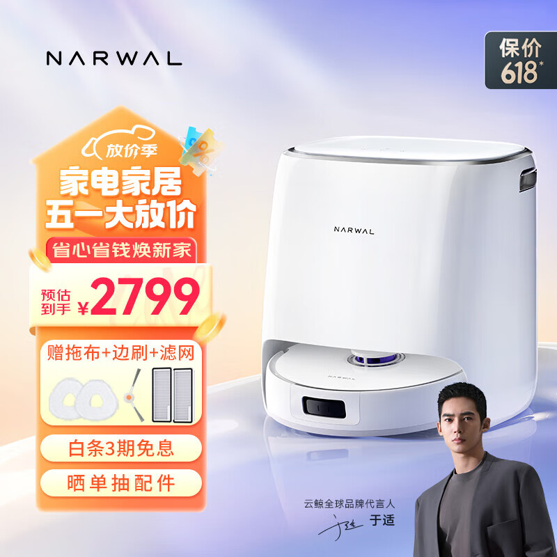 云鲸扫地机器人J4 Lite 扫拖一体自动清洗全自动集尘洗烘拖布 智能家用吸尘器拖地机擦地机 水箱版价格:2799.00元!