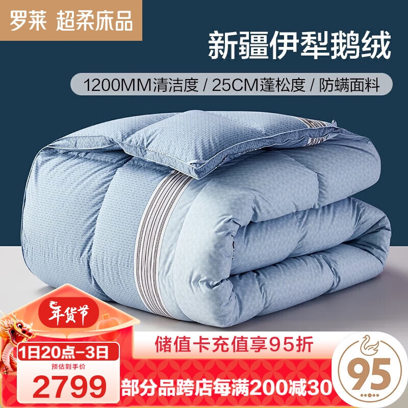 罗莱家纺 卡尔里特 95%鹅绒羽绒被冬被子1100g 220*250cm价格:3799.00元!