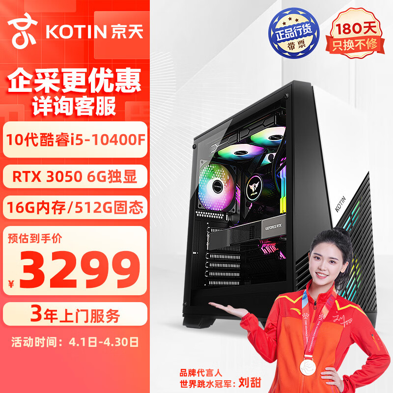 京天 Strike S50 i5-10400F/RTX3050/16G DDR4/512G电脑台式机组装吃鸡电脑游戏主机UPC价格:3299.00元!