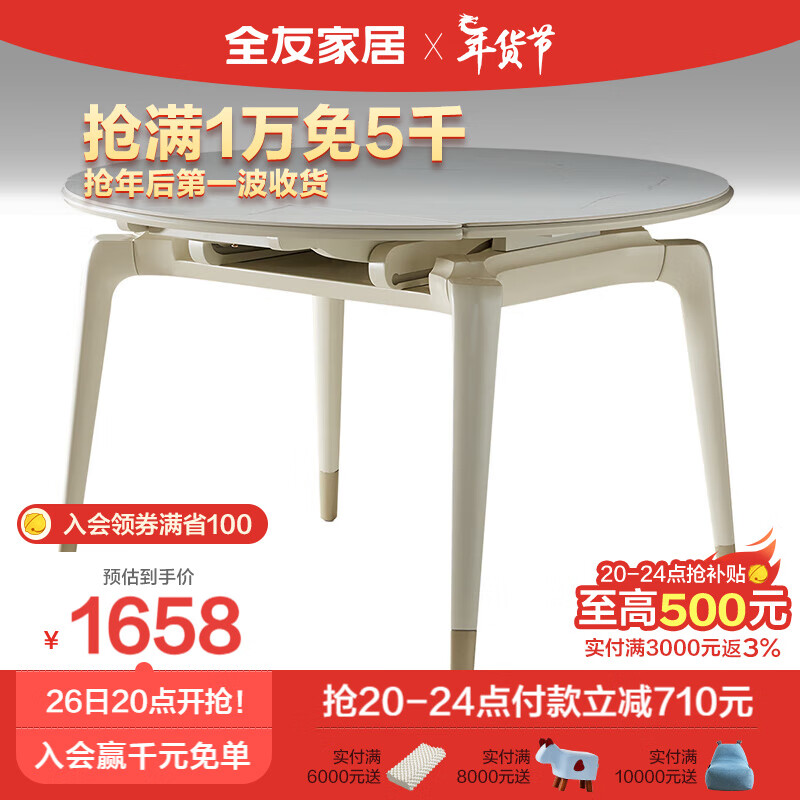 全友家居 餐桌现代简约岩板餐桌可圆可方伸缩功能吃饭桌子家具DW1121B价格:2368.57元!