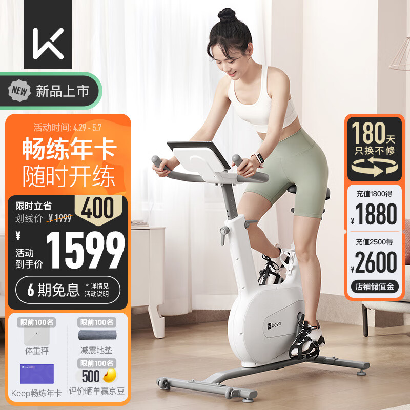 Keep动感单车mini畅练卡版家用运动器材含年卡组合白色款(需插电)价格:1599.00元!