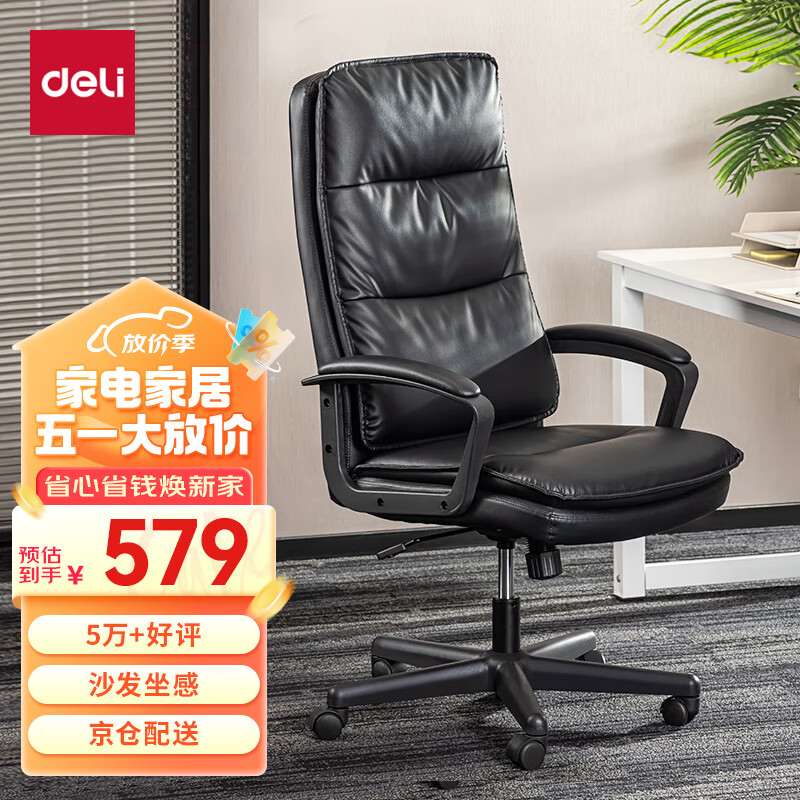 得力(deli)91029电脑椅 家用办公椅 转椅人体工学皮椅子 老板椅价格:499.00元!