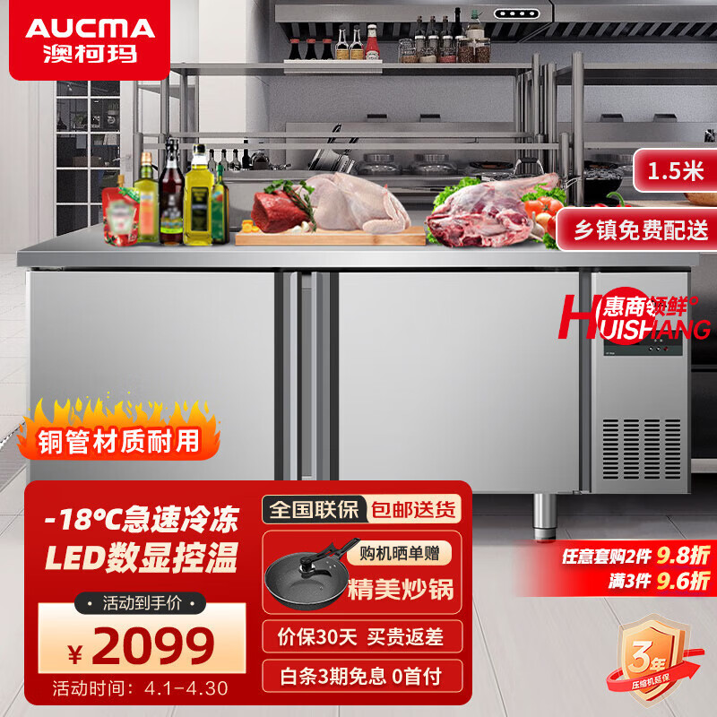 澳柯玛(AUCMA)冷藏工作台冰柜商用冷藏工作台操作台卧式冰箱奶茶设备平冷水吧台厨房冰箱冷柜 1.5米丨双温丨HCF-15A8J价格:2099.00元!