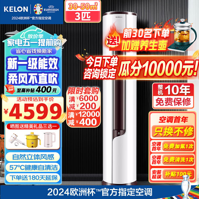 科龙(KELON)空调3匹新一级能效变频冷暖 客厅圆柱空调立式柜机智能自清洁大风口送风KFR-72LW/EFLVA1价格:4589.00元!