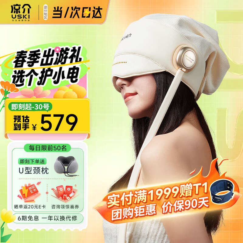凉介USKI头部按摩仪 R1S头眼颈一体式睡眠仪2.0 眼部按摩仪热敷 头部按摩 生日 母亲节礼物实用 杏色价格:579.00元!