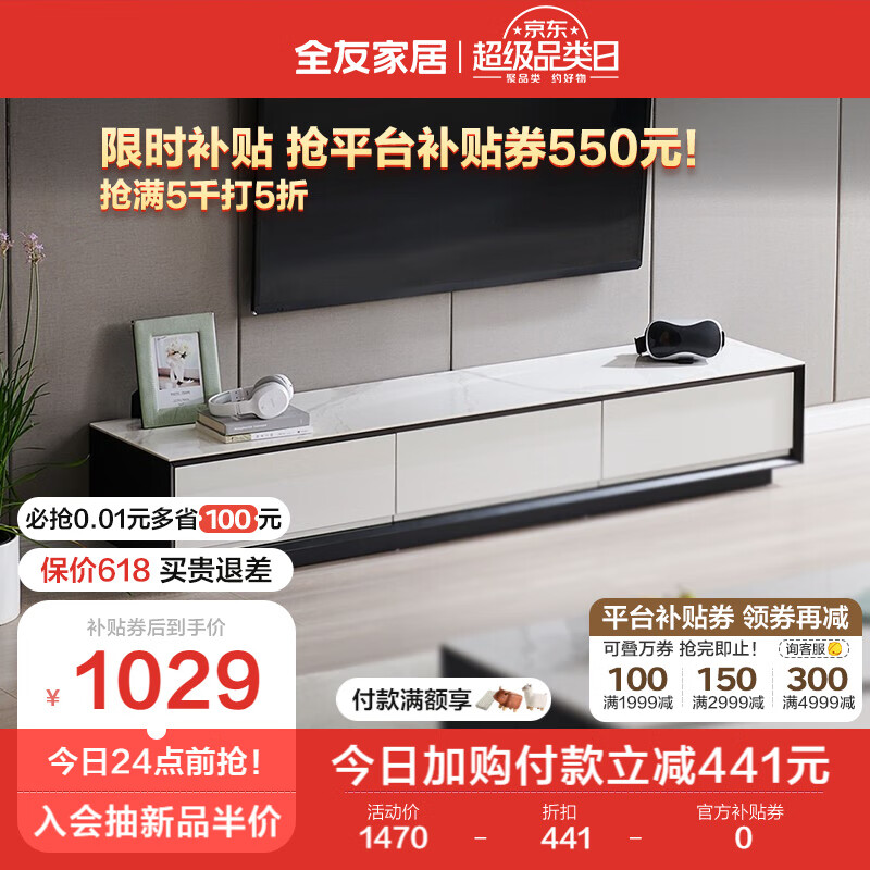 全友家居 电视柜大小户型岩板收纳储物柜子现代客厅家具DW1055价格:1470.00元!