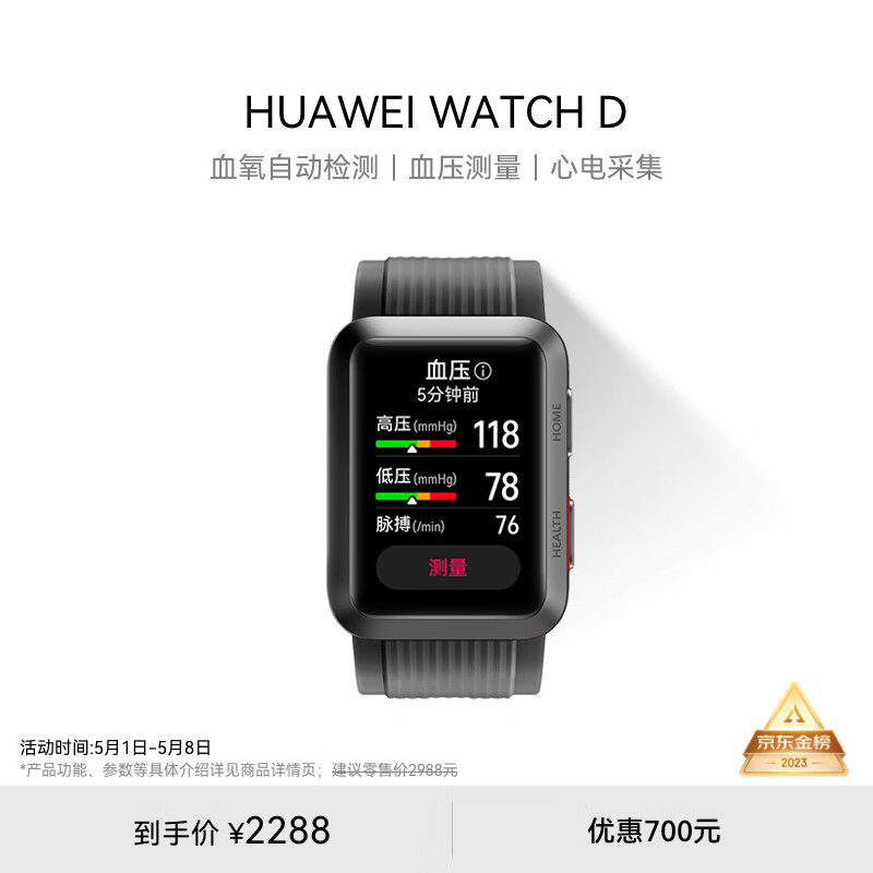 华为【便携血压测量手表】WATCH D华为手表智能手表华为血压表 支持测量血压 黑色价格:2288.00元!