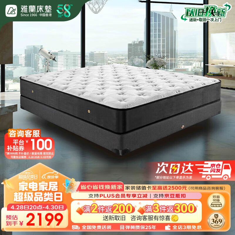 雅兰50周年纪念款 亲肤透气整网弹簧椰棕床垫 蘭朋友加硬版 1.5*2米价格:2699.00元!