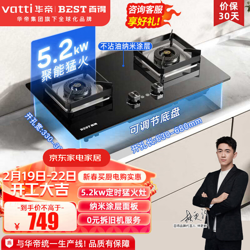 百得(BEST)华帝出品燃气灶煤气灶双灶具 5200W猛火定时灶 铝炉头 纳米涂层玻璃 可调节底壳 JZT-QE70(天然气)价格:849.00元!
