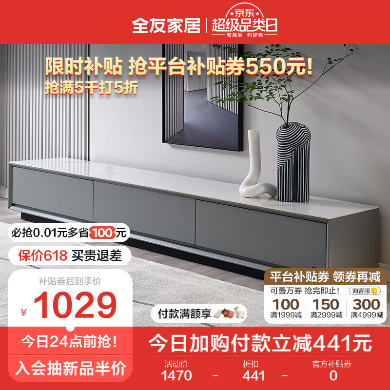 全友家居 电视柜大小户型岩板收纳储物柜子现代客厅家具DW1055价格:1470.00元!