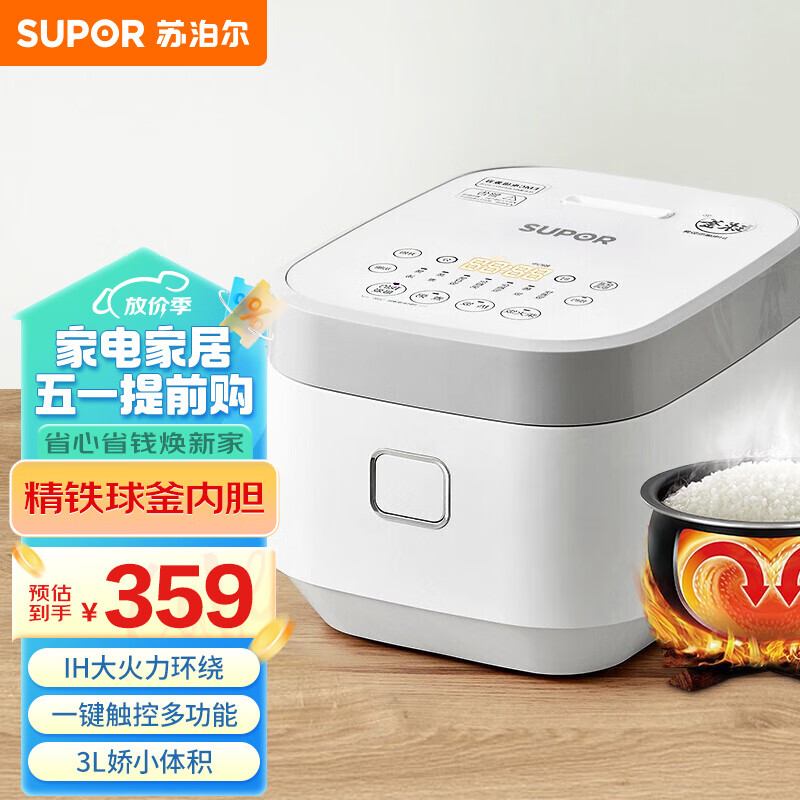 苏泊尔(SUPOR) 电饭煲 IH电磁加热迷你电饭锅2-4人3L球釜智能预约家用精控火候SF30HC649家用电饭煲智能饭煲 SF30HC649 3L价格:359.00元!