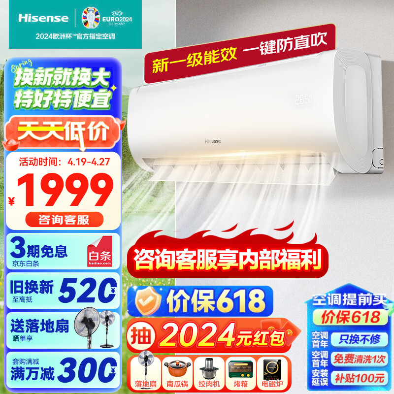海信(Hisense)空调 大1.5匹速冷热新一级能效 大风量速冷暖APP智能防直吹 壁挂式卧室空调挂机KFR-35GW/E370-X1价格:1999.00元!