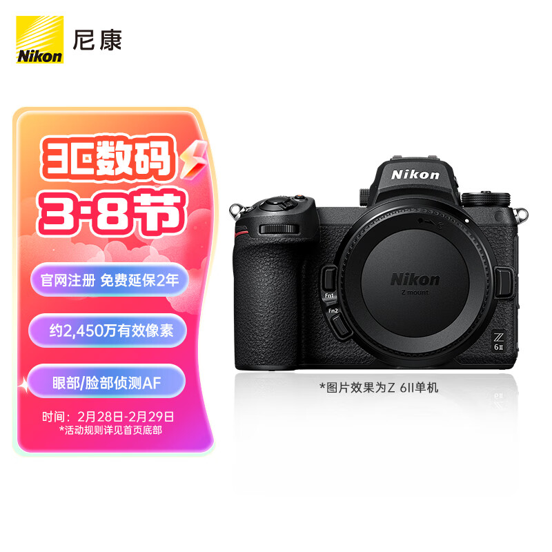 尼康(Nikon)Z6II(Z6 2/Z62)全画幅微单机身 微单机身(约2,450万有效像素 5轴防抖)价格:11699.00元!