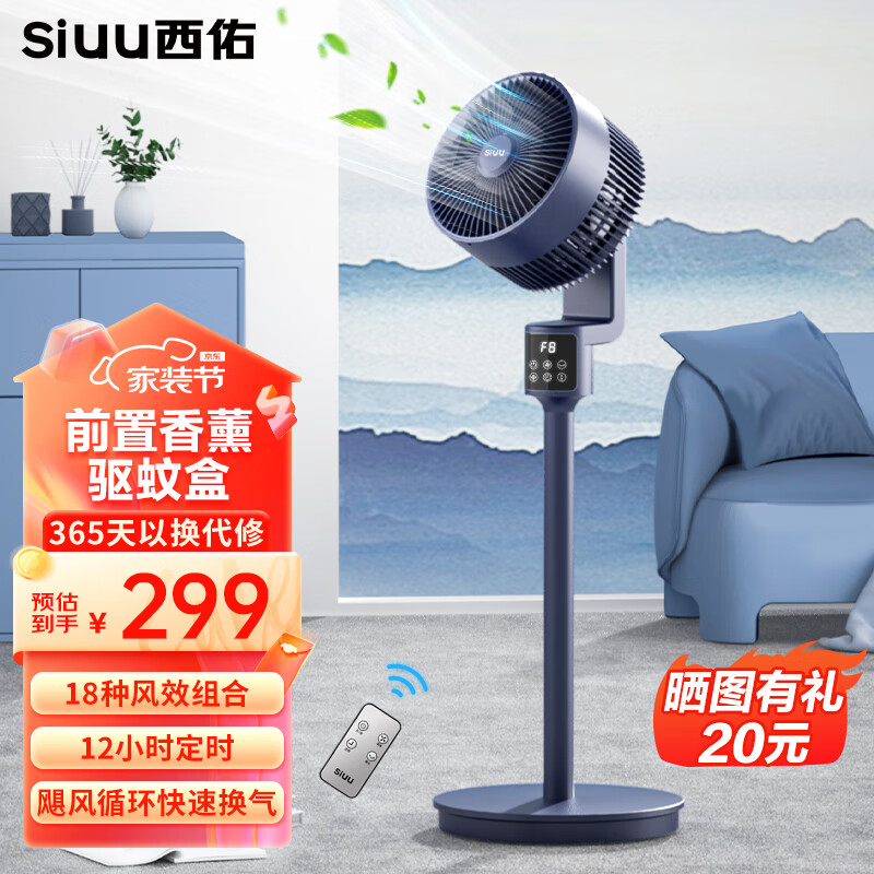 西佑空气循环扇/家用电风扇/立式遥控落地扇/轻音低噪节能立式电扇/台式桌面小型风扇遥控香薰款价格:365.50元!